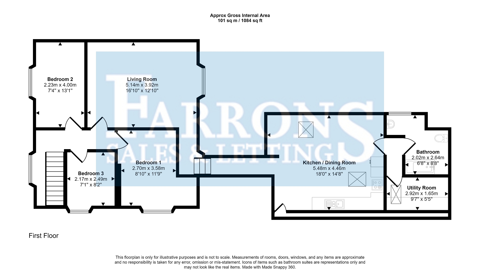 Entered on the ground floor with private access. Carpeted flooring and stairs to first floor.