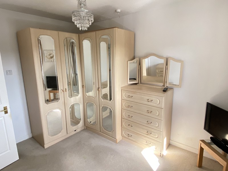 Upvc double glazed window to front, night storage heater, wardrobes with shelving and hanging space.